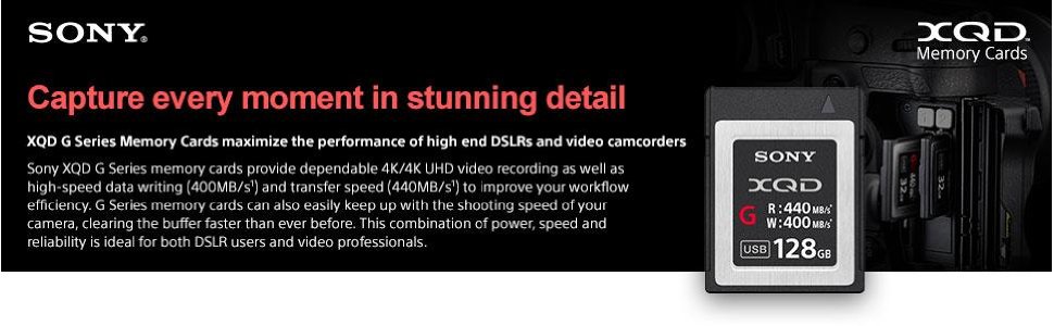 Hỗ trợ chuẩn 4K Ultra HD Thẻ nhớ Sony XQD G Series có bộ điều khiển mới được phát triển bởi Sony và chức năng độc đáo "EB Stream", cho phép bạn quay video 4K khung hình cao mà hoàn toàn không bị suy giảm tốc độ |
