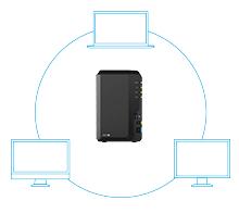 |  | Chia sẻ và đồng bộ hóa tập tin Với sự hỗ trợ toàn diện cho các giao thức chia sẻ tệp mạng - như CIFS, AFP, NFS, FTP và hơn thế nữa - Synology DS218+ cho phép toàn bộ văn phòng tập trung các tệp và cộng tác vào các dự án. Hoặc đồng bộ hóa các tệp trên nhiều thiết bị hoặc thậm chí trên một số vị trí để các nhóm từ xa có thể làm việc cùng nhau. |