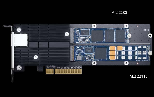 Tối ưu hóa hiệu suất Thiết bị lưu trữ mạng NAS Synology RackStation RS1221RP+ cung hai khe cắm PCIe để hỗ trợ SSD M.2 giúp bạn có thể tận dụng tối đa chức năng của Synology SSD Cache. Thêm bộ nhớ đệm SSD để phản hồi I / O nhanh hơn tới 20 lần mà không cần sử dụng khay ổ đĩa phía trước. Bạn có thể mở rộng thêm 12 ổ nữa với hai Synology RX418 để mở rộng dung lượng lưu trữ. |