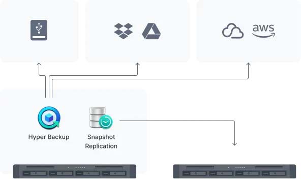 Bảo vệ và khôi phục dữ liệu Thiết bị lưu trữ mạng NAS Synology RackStation RS822RP+ hỗ trợ sao lưu dữ liệu NAS Synology của bạn lên đám mây bằng Hyper Backup hoặc đồng bộ hóa dữ liệu được yêu cầu giữa C2 Storage và các văn phòng chi nhánh bằng Hybrid Share. |