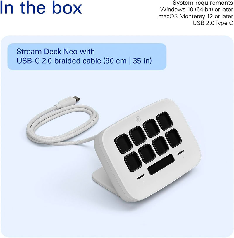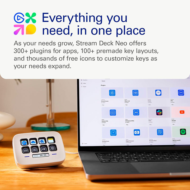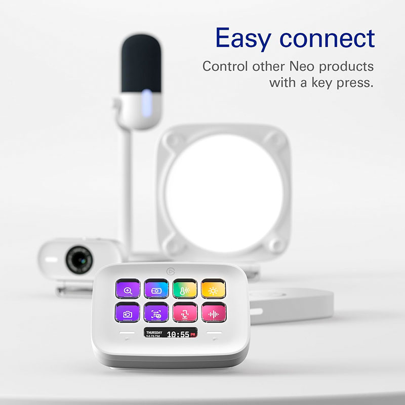 Elgato Stream Deck Neo là thiết bị điều khiển nhỏ gọn 8 phím, giúp bạn đơn giản hóa các tác vụ hàng ngày, giải phóng thời gian và gia tăng tính sáng tạo.