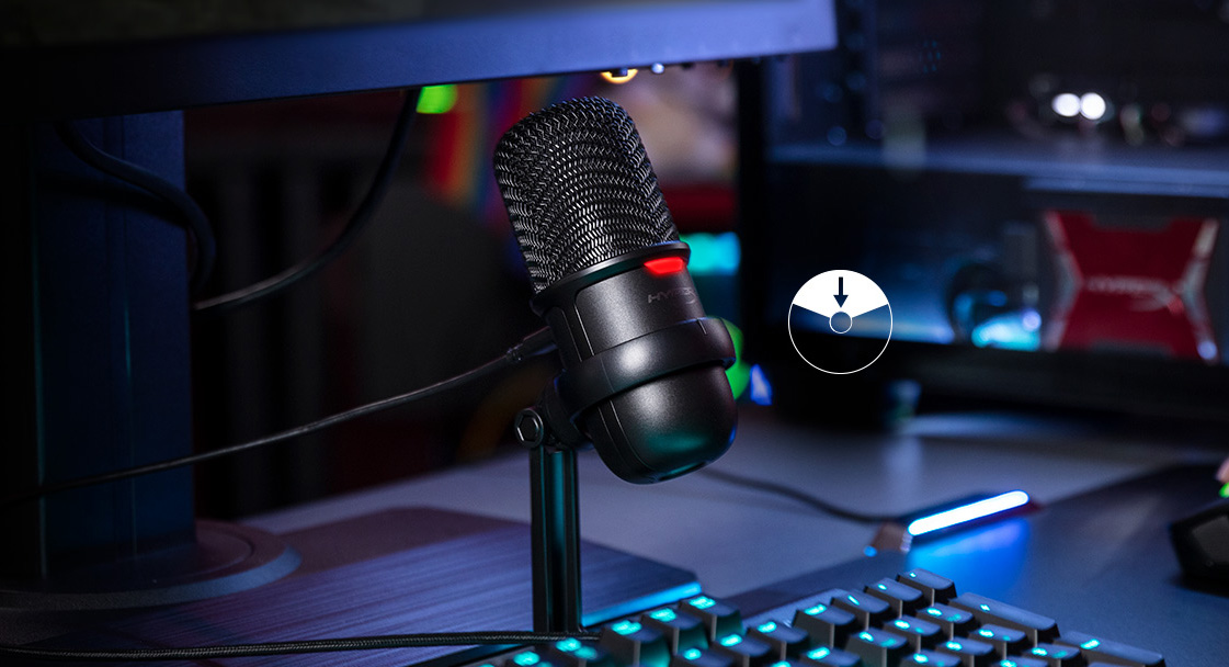 | Mute cảm ứng với Led trạng thái Nút Mute trên Micro HyperX SoloCast là nút cảm ứng, bạn chỉ cần chạm nhẹ vào đầu Micro để tắt tiếng và đèn Led sẽ thể hiện trạng thái có đang thu âm hay không, rất nhanh và tiện lợi. |  |