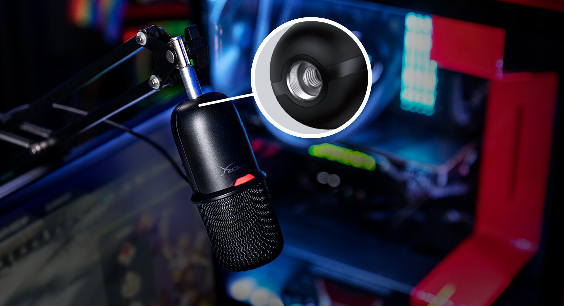 | Tương thích Boom Arm và Mic stand HyperX SoloCast USB Condenser Gaming Microphone trang bị lỗ ren 3/8 inch và 5/8 inch, giúp tương thích với hầu hết các Boom Arm và Mic stand. |  |