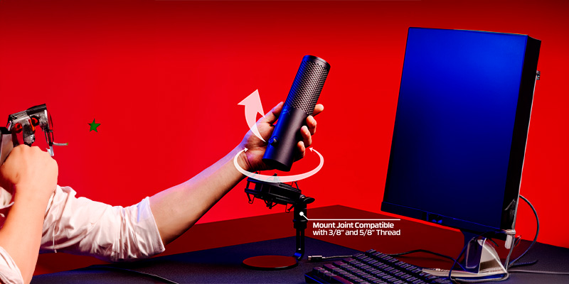 Sản phẩm được trang bị shock mount tích hợp giúp giảm tối đa rung động từ bàn hoặc tay, đảm bảo âm thanh không bị nhiễu hay dội lại khi sử dụng lâu dài. Ngoài ra, bộ lọc pop filter tích hợp bên trong giúp loại bỏ các âm gió và âm bật “p”, “t” khi nói chuyện gần micro, giúp bản thu trở nên mượt mà, dễ nghe hơn ngay cả khi không cần phần mềm xử lý hậu kỳ.