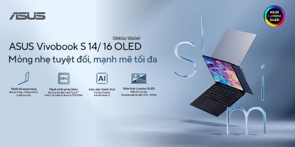 ASUS Vivobook S 14 OLED - Mẫu laptop văn phòng nhỏ gọn mạnh nhất 2024 Nếu bạn cần một laptop văn phòng nhỏ gọn, sang trọng và có tính AI...