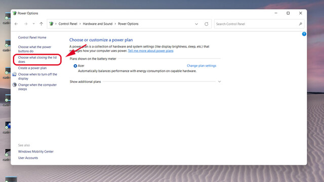 Chọn Choose what closing the lid does