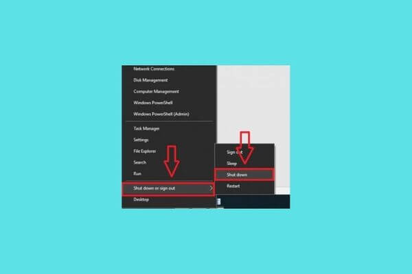 Nhấn Windows + X → Nhấn U hai lần liên tiếp