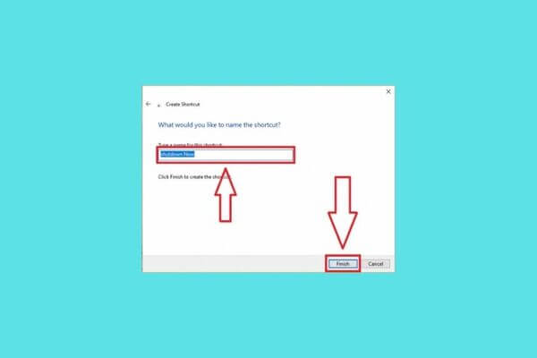 Đặt tên cho Shortcut → Nhấn Finish
