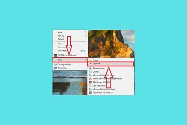 Nhấp chuột phải → New → chọn Shortcut
