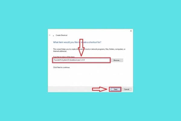Bước 2: Hộp thoại sẽ được mở ra, bạn nhập lệnh như trong ảnh và chọn Next.