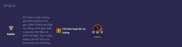 Một khi Aatrox hay tướng giữ Kiếm Darkin bị hạ gục thì Kiếm Darkin sẽ nhập vào đồng minh gần nhất 450 Máu và 25% Hút Máu, giúp tăng khả năng sống sót cũng như chiến đấu của đồng minh đó. Sau 4 giây, Aatrox sẽ được Hồi Sinh, trong khi tướng đồng minh đang giữ Kiếm Darkin sẽ chết thay. Thực chất, đây là sự đổi chỗ và thay đổi vị trí giữa Aatrox và tướng đồng minh, Aatrox quay trở lại trận đấu và tướng đồng minh sẽ chết.