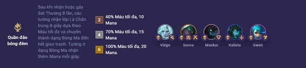 Tướng trong Quần Đảo Bóng Đêm sẽ được nhận lớp Lá Chắn sau khi nhận hoặc gây sát thương 8 lần. Lá Chắn dựa trên Máu tối đa và kéo dài trong 8 giây. Sau đó, Tướng chuyển thành dạng Bóng Ma và nhận thêm Mana mỗi giây trong thời gian giao tranh.
