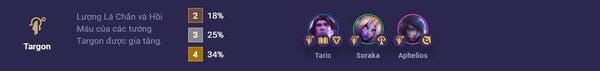Các tướng Targon được gia tăng lượng Lá Chắn và hồi máu, do đó các tướng này sẽ có sức bền và khả năng tự phục hồi cao hơn so với những tướng khác.