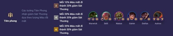 Các tướng Tiên Phong có khả năng nhận giảm Sát Thương dựa trên lượng Máu đã mất. Điều này có nghĩa là khi Máu của tướng Tiên Phong giảm, họ sẽ nhận được một hình phạt giảm Sát Thương từ đòn tấn công của địch.