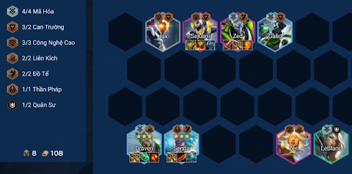 Đây là đội hình có độ khó cao do các tướng Mã Hóa thường bị tranh giành gay gắt. Chỉ nên sử dụng khi bạn sớm thu thập được nhiều Draven và sở hữu lõi công nghệ hỗ trợ roll 3 sao hiệu quả.