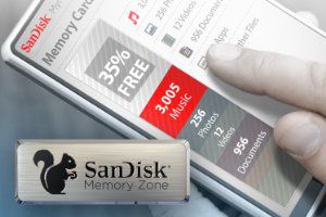 Phần mềm đi kèm SanDisk Memory Zone App - dễ dàng quản lý file Có sẵn trong cửa hàng Google Play, ứng dụng MemoryZone của SanDisk cho phép bạn xem, truy cập và sao lưu tất cả các tập tin từ bộ nhớ điện thoại của bạn. Nó cũng có thể tự động di chuyển các tập tin từ điện thoại vào ổ đĩa của bạn để giải phóng không gian. |