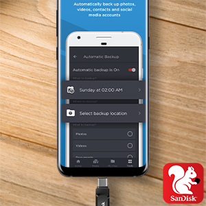 Tự động sao lưu USB 3.1 OTG SanDisk Ultra Dual Drive Go Type-C DDC3 tự động sao lưu ảnh, video, nhạc, tài liệu và danh bạ mới nhất của bạn với ứng dụng SanDisk MemoryZone (có sẵn trên Google Play). |