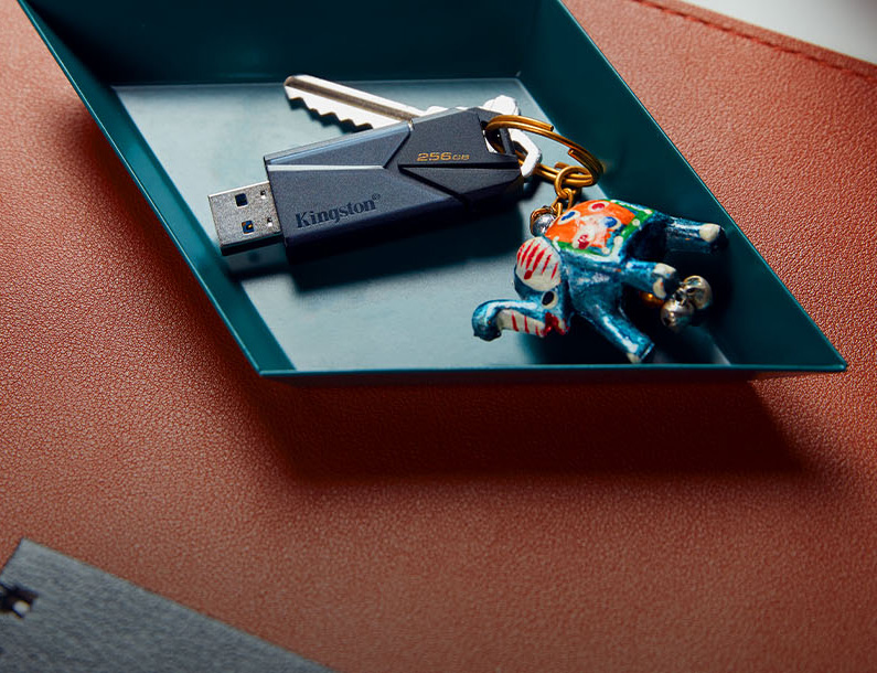 Trang bị lỗ móc khóa USB 3.2 Gen 1 Kingston DataTraverler Exodia Onyx được trang bị lỗ móc khóa lớn giúp bạn có thể thoải mái treo USB vào chìa khóa, hoặc treo các dây trang trí mà bạn thích. |