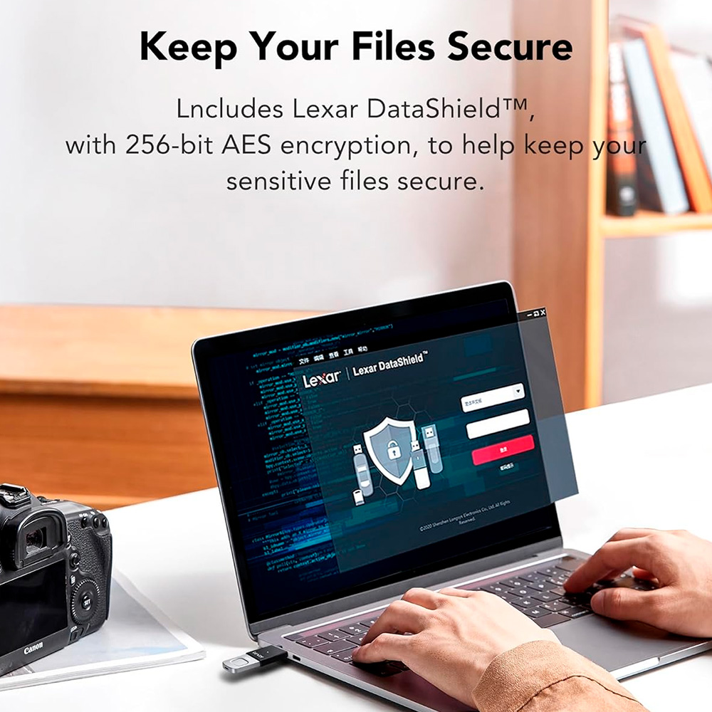 Không chỉ bảo mật bằng vân tay, USB Lexar F35 Pro còn tích hợp công nghệ mã hóa phần cứng AES 256-bit. Điều này đảm bảo mọi dữ liệu lưu trữ trên thiết bị đều được bảo vệ toàn diện trước nguy cơ xâm nhập, đánh cắp hoặc bị mất. Đây là chuẩn bảo mật được sử dụng phổ biến trong môi trường quân sự và doanh nghiệp.