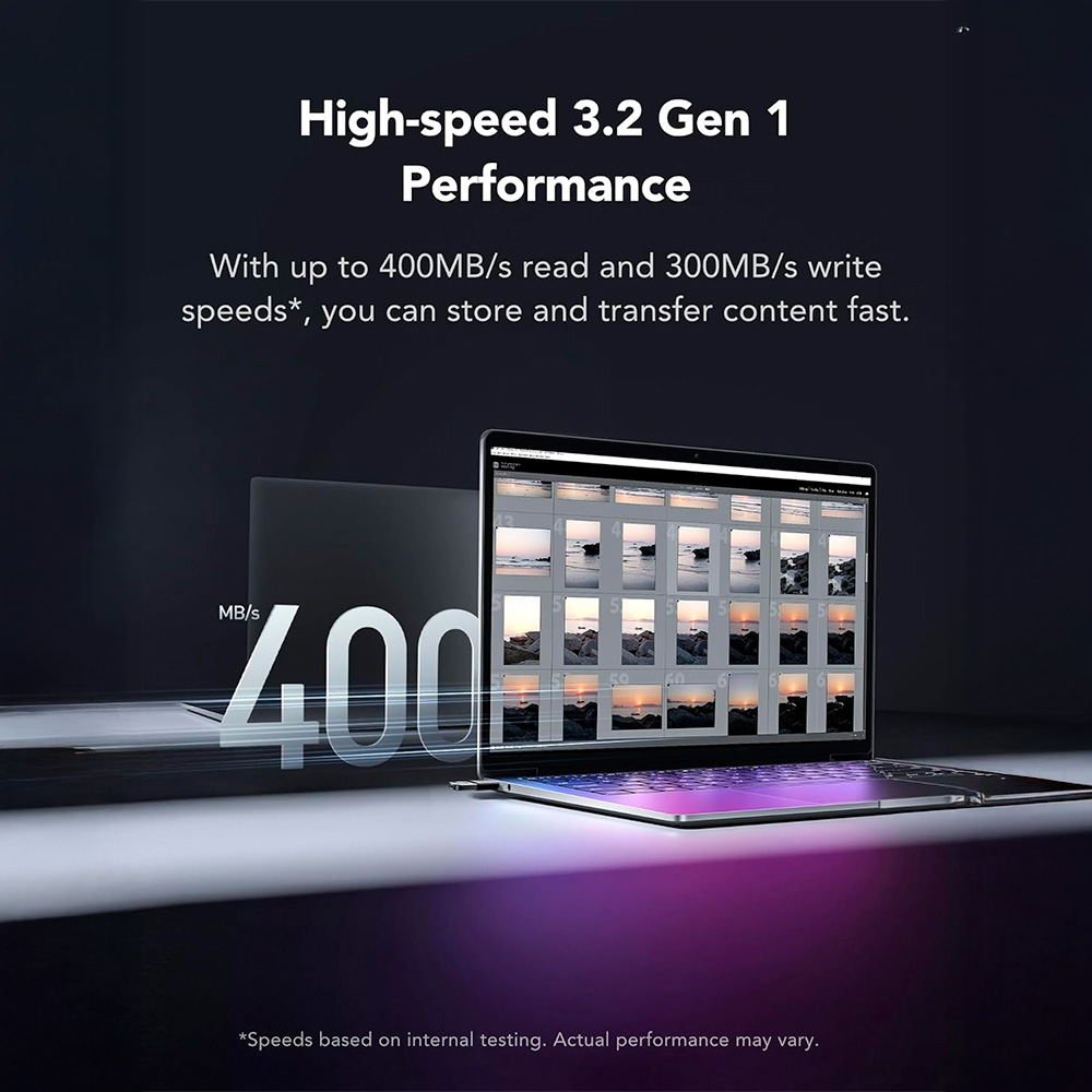 Sử dụng chuẩn USB 3.2 Gen 1, Lexar F35 Pro mang lại tốc độ đọc lên đến 400MB/s, giúp bạn sao chép các tập tin dung lượng lớn như video, ảnh RAW, hoặc tài liệu công việc chỉ trong tích tắc. So với các USB truyền thống, sản phẩm cho hiệu suất nhanh gấp 10 lần, giúp tiết kiệm thời gian đáng kể.