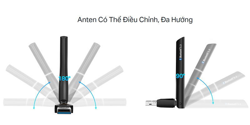TP-Link UB500 Plus được trang bị ăng-ten đa hướng hiệu suất cao, có thể điều chỉnh và xoay 180 độ. Thiết kế này giúp nâng cao hiệu suất truyền tải và mở rộng phạm vi kết nối trong nhiều môi trường khác nhau. Dù bạn ở nhà hay văn phòng, UB500 Plus đảm bảo kết nối Bluetooth ổn định và mạnh mẽ, đáp ứng nhu cầu sử dụng đa dạng của bạn.