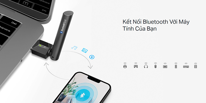 Một trong những ưu điểm nổi bật của USB Bluetooth 5.3 TP-Link UB500 Plus là khả năng kết nối đồng thời lên đến 7 thiết bị Bluetooth. Điều này cho phép bạn sử dụng nhiều thiết bị cùng lúc mà không gặp phải tình trạng gián đoạn hay xung đột kết nối. Bạn có thể thoải mái kết nối tai nghe, bàn phím, chuột và các thiết bị khác để tối ưu hóa hiệu suất làm việc và giải trí của mình.