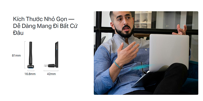 Với kích thước 81 x 42 x 16.8 mm, TP-Link UB500 Plus có thiết kế nhỏ gọn, dễ dàng mang theo và sử dụng ở bất kỳ đâu. Dù bạn đang làm việc tại văn phòng, học tập tại nhà hay di chuyển, thiết bị này sẽ là người bạn đồng hành lý tưởng, giúp bạn duy trì kết nối không dây mọi lúc, mọi nơi.