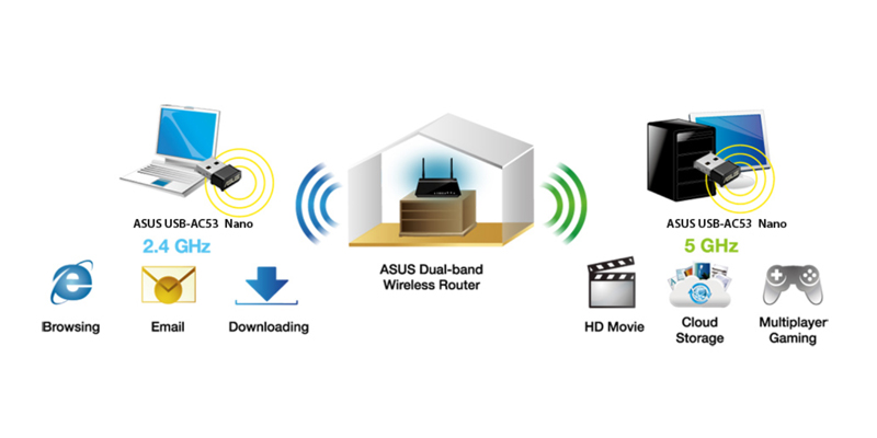 Wi-Fi siêu nhanh ngày càng trở nên dễ truy cập hơn qua USB, đạt tốc độ lên tới 867Mbps trên băng tần 5GHz rõ ràng. Sử dụng không dây 802.11ac, kết nối nhanh hơn và tận hưởng mọi thiết bị của bạn.