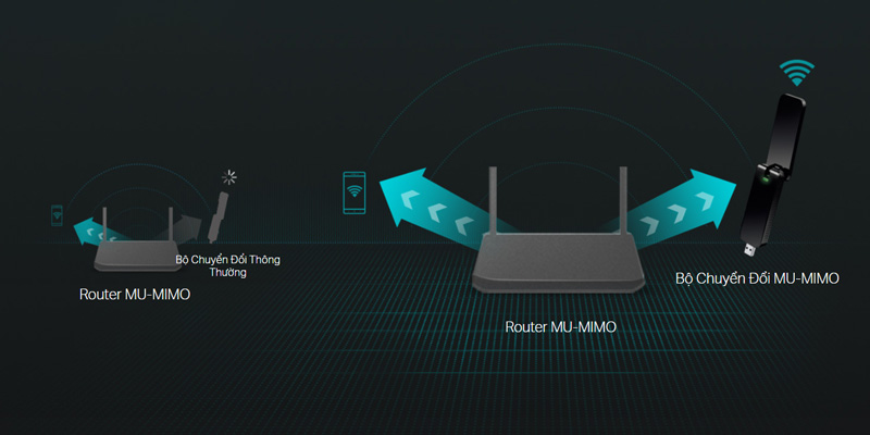 Với công nghệ MU-MIMO, USB WiFi TP-Link Archer T4U V5 AC1300 cung cấp hai luồng dữ liệu đồng thời, giúp cải thiện thông lượng và mang lại hiệu quả của toàn bộ mạng khi hoạt động với Router MU-MIMO tương thích.