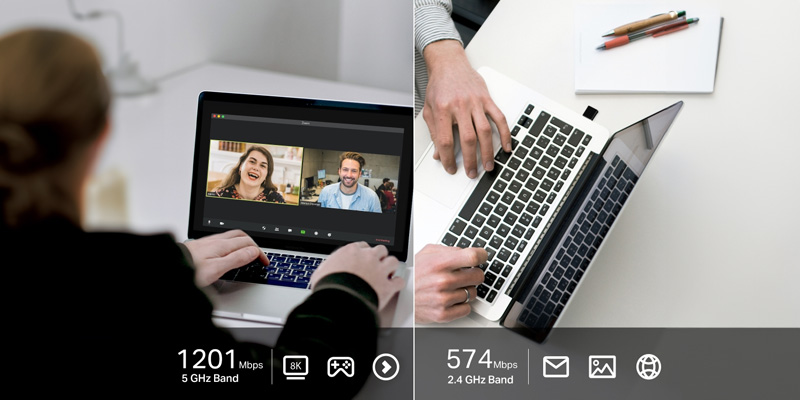 OFDMA và MU-MIMO đảm bảo kết nối WiFi hiệu quả nhất cho PC của bạn. MU-MIMO cho trải nghiệm các luồng, trò chơi và tải lên hoàn hảo trong khi mạng của bạn xử lý đồng thời băng thông cho nhiều thiết bị. OFDMA giúp PC của bạn sẽ nhận dữ liệu cùng lúc với các thiết bị khác trên cùng một luồng, giảm độ trễ đến gần như bằng không đối với video và game.