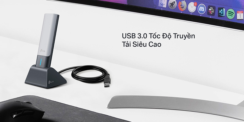 Sản phẩm có thiết kế nhỏ gọn, hiện đại với dây nối USB giúp tăng tính linh hoạt khi kết nối với PC hoặc laptop. USB WiFi TP-Link Archer TX50UH WiFi 6 AX3000 Archer-TX50UH phù hợp cho nhiều nhu cầu sử dụng như làm việc từ xa, xem video 4K, chơi game trực tuyến hoặc phát trực tiếp nội dung với độ trễ thấp.