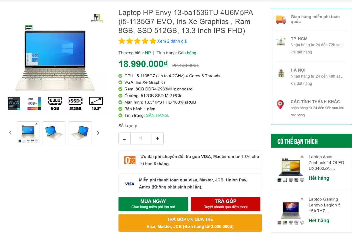 Bước 1: Chọn sản phẩm cần mua và nhấn Mua ngay