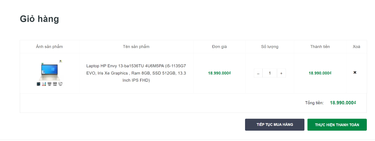 Bước 2: Tại trang Giỏ hàng, nhấn nút Thực hiện thanh toán