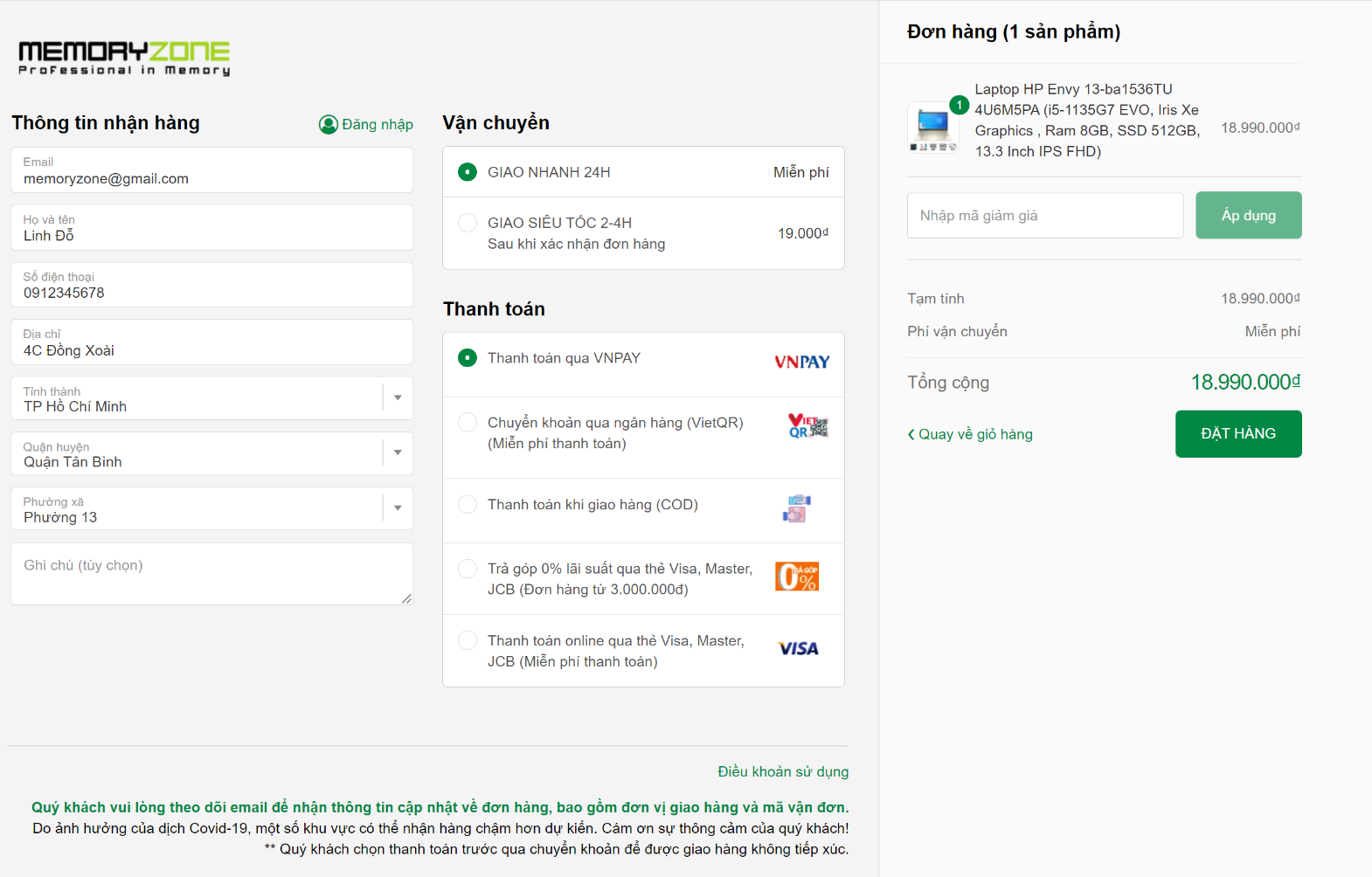 3. Hướng dẫn thanh toán qua VNPAY khi mua hàng trực tuyến trên website https://memoryzone.com.vn