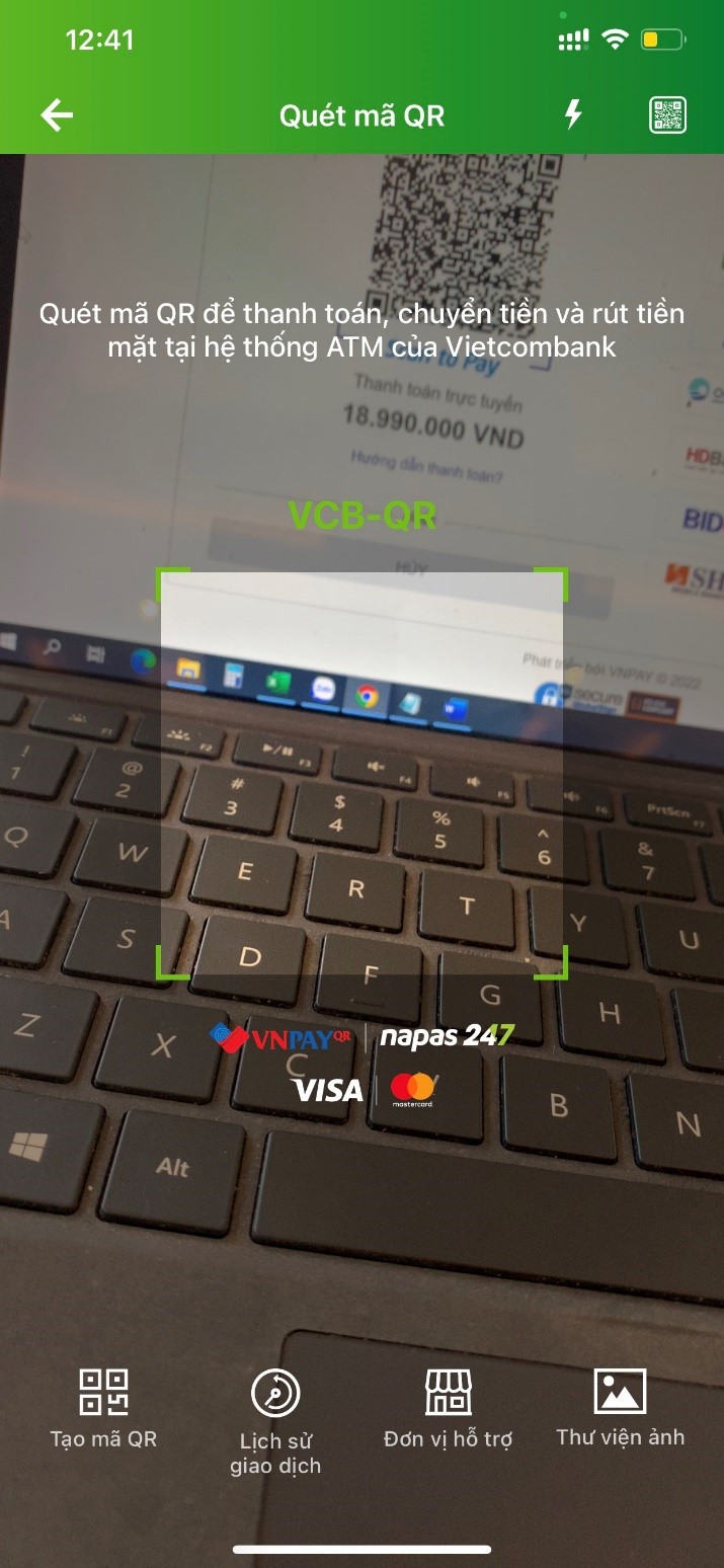 Bước 5: Đăng nhập App ngân hàng để tiến hành thanh toán qua mã QR, giao diện quét QR khác nhau tuỳ thuộc vào mỗi ngân hàng.