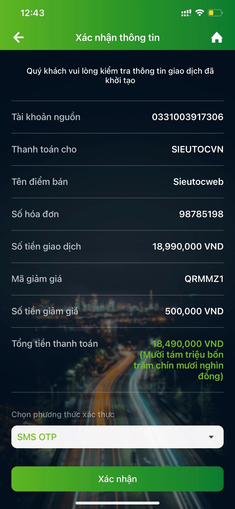 Bước 7: Xác nhận và Hoàn tất thanh toán.