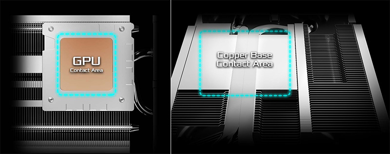 Với thiết kế tản nhiệt cao cấp cùng diện tích tiếp xúc trực tiếp với GPU được tối đa hóa để cải thiện hiệu quả truyền nhiệt.