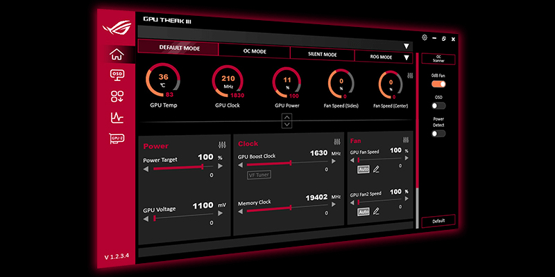 Phần mềm ASUS GPU Tweak II đưa việc điều chỉnh card đồ họa lên một tầm cao mới. Nó cho phép bạn tinh chỉnh các thông số quan trọng bao gồm đồng hồ lõi GPU, tần số bộ nhớ và cài đặt điện áp với tùy chọn theo dõi mọi thứ trong thời gian thực thông qua màn hình. Khả năng điều khiển quạt nâng cao cũng được bao gồm cùng với nhiều tính năng khác để giúp bạn tận dụng tối đa card đồ họa của mình.