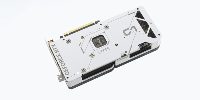 VGA Asus Dual GeForce RTX 4070 Super White 12GB OC GDDR6X được gia cố bởi một tấm nền PCB để tăng thêm độ cứng cho cấu trúc, giúp chống uốn cong và bảo vệ các thành phần cũng như các đường dẫn khỏi bị hư hại.