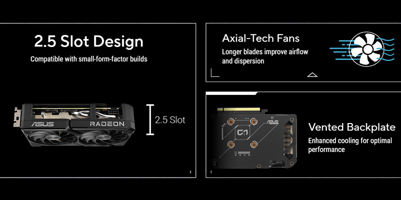 ASUS trang bị cho sản phẩm tấm backplate bảo vệ chắc chắn giúp gia cố PCB, hạn chế cong vênh và bảo vệ các linh kiện bên trong. Bên cạnh đó, khung gá được làm từ thép không gỉ 304, chống ăn mòn và tăng độ cứng cáp khi lắp đặt. Công nghệ sản xuất Auto-Extreme tự động hóa toàn bộ quá trình hàn linh kiện chỉ trong một lần, giảm thiểu lỗi sản xuất và nâng cao độ ổn định của sản phẩm. Tất cả những yếu tố trên giúp VGA Asus Dual Radeon RX 9060 XT 8GB GDDR6 trở thành sự lựa chọn đáng tin cậy trong thời gian dài, phù hợp với cả người dùng phổ thông lẫn chuyên nghiệp.