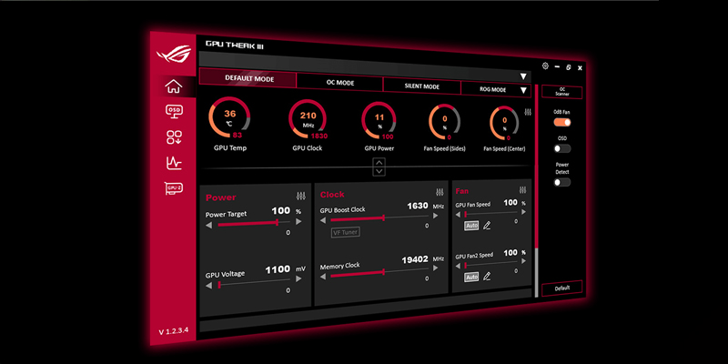 Phần mềm ASUS GPU Tweak III đưa khả năng tinh chỉnh card đồ họa lên một tầm cao mới. Nó cho phép bạn điều chỉnh các thông số quan trọng bao gồm xung lõi GPU, tần số bộ nhớ và cài đặt điện áp, với tùy chọn giám sát mọi thứ trong thời gian thực thông qua màn hình hiển thị trên màn hình có thể tùy chỉnh. Điều khiển quạt nâng cao cũng được bao gồm cùng với nhiều tính năng khác để giúp bạn tận dụng tối đa card đồ họa của mình.
