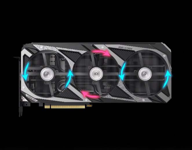 Công nghệ quạt Axial Thiết kế quạt công nghệ Axial giúp tối ưu hóa cho bộ tản nhiệt để tản nhiệt tốt hơn và diện tích bề mặt to hơn thế hệ trước. Số lượng cánh quạt đã được tăng lên cho cả ba quạt, với 13 cánh trên quạt trung tâm và 11 cánh trên quạt phụ. Vòng tròn bên ngoài nối liền với cánh quạt đã được làm mỏng đi cho phép hút gió bên ngoài nhiều hơn và dẫn luồng khí qua bộ tản nhiệt tốt hơn. |