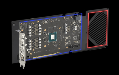 | PCB nhỏ gọn VGA ROG Strix GeForce RTX 4060 Ti OC Edition có các layout đã được tối ưu hóa trên một PCB ngắn để giảm hao phí điện năng và để nhiệt thoát ra ngoài qua một lỗ thông hơi lớn trên tấm ốp lưng . |  |
