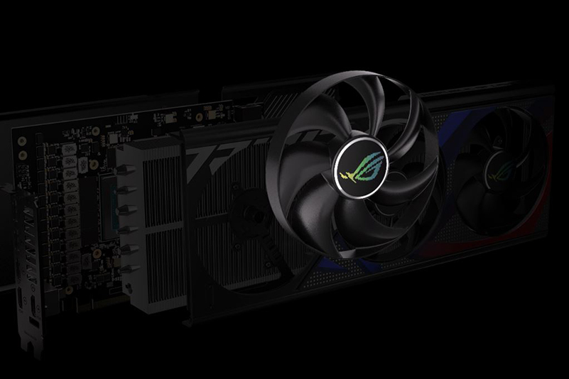 Nâng cao công nghệ trục ROG Strix GeForce RTX 4090 OC Edition được trang bị trục quạt lớn hơn và tốt hơn các dòng trước đây. Các quạt công nghệ hướng trục quay trên các ổ bi kép và đã được mở rộng quy mô để đẩy thêm 23% không khí qua thẻ, tạo tiền đề cho nhiệt độ thấp hơn, ít tiếng ồn hơn và hiệu suất cao hơn. |