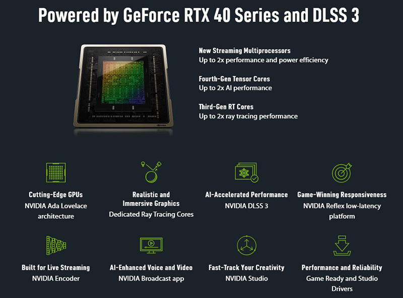 NVIDIA DLSS 3 NVIDIA DLSS 3 (Deep Learning Super Sampling) là công nghệ render AI đột phá chỉ có trên GPU GeForce RTX, công nghệ này sử dụng các bộ xử lý AI Nhân Tensor chuyên dụng để tăng hiệu suất đồ họa. DLSS khai thác sức mạnh của mạng thần kinh học sâu để tăng tốc độ khung hình và tạo ra hình ảnh đẹp mắt, sắc nét cho game yêu thích của bạn |