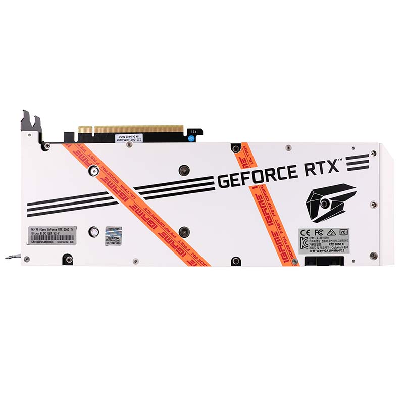 Tấm Plate bảo vệ VGA Colorful GeForce RTX 3060 Ti Ultra W OC G6X V2-V trang bị tấm backplate để bảo vệ card đồ họa chắc chắn hơn, đồng thời tăng khả năng tản nhiệt cho linh kiện bên trong. |