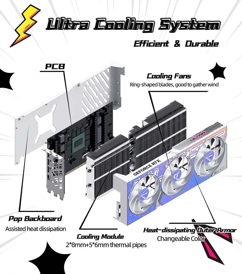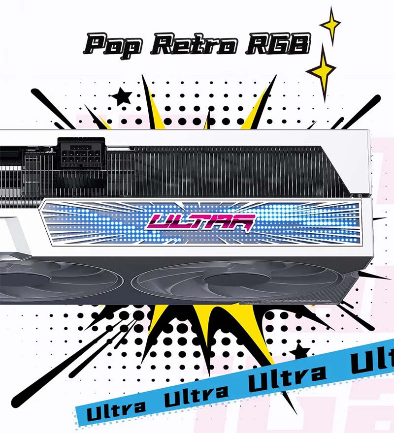Pop Retro RGB VGA Colorful iGame GeForce RTX 4080 Ultra W OC-V thiết kế độc đáo với đèn hiệu ứng RGB tạo nên điểm nhấn cho card đồ họa của bạn.  |