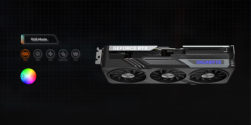 VGA Gigabyte GeForce RTX 4060 Ti GAMING OC 16G GDDR6 với các tùy chọn màu sắc có thể tùy chỉnh 16,7M và nhiều hiệu ứng ánh sáng, bạn có thể chọn các hiệu ứng ánh sáng hoặc đồng bộ hóa với các thiết bị Gigabyte khác.