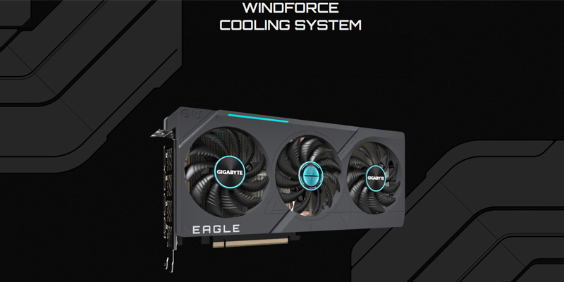 Hệ thống tản nhiệt WINDFORCE trang bị 3 fan 80mm, quay luân phiên cùng 4 ống dẫn nhiệt bằng đồng tổng hợp để GPU tiếp xúc trực tiếp giúp mang lại khả năng tản nhiệt hiệu quả cao.