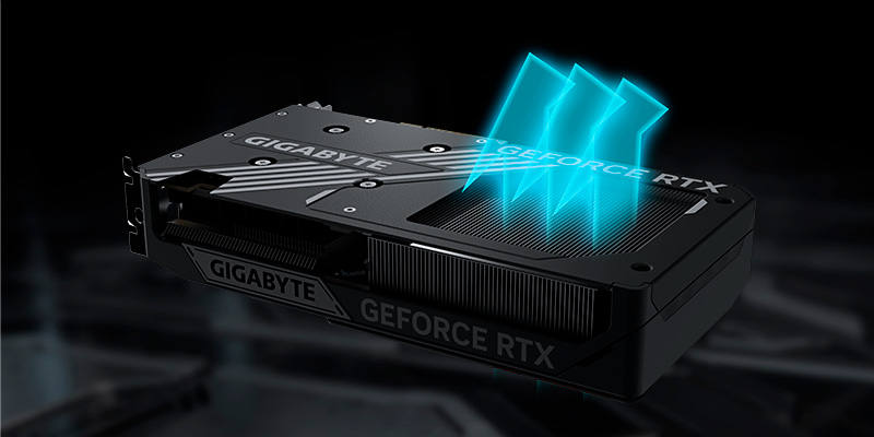 Card đồ họa sử dụng hệ thống tản nhiệt WINDFORCE độc quyền của Gigabyte, bao gồm quạt HAWK với thiết kế cánh quạt độc đáo, quay đảo chiều để giảm nhiễu loạn không khí và tăng áp suất gió. Kết hợp với ống dẫn nhiệt bằng đồng tiếp xúc trực tiếp với GPU và gel tản nhiệt cấp máy chủ, hệ thống này đảm bảo nhiệt độ hoạt động ổn định ngay cả trong các phiên làm việc hoặc chơi game kéo dài.